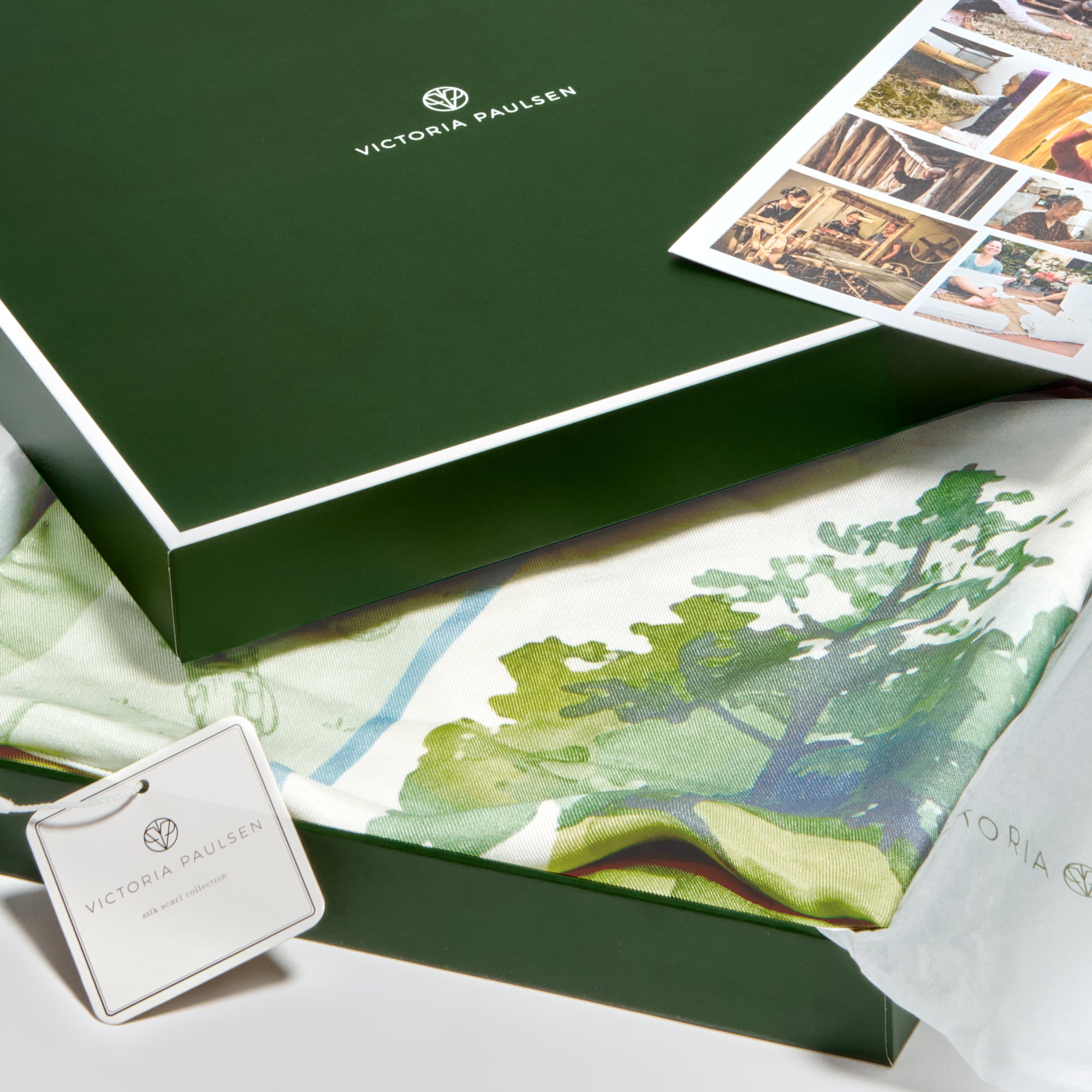 Dry clean only. Each scarf comes in a luxurious dark green Victoria Paulsen scarf box.