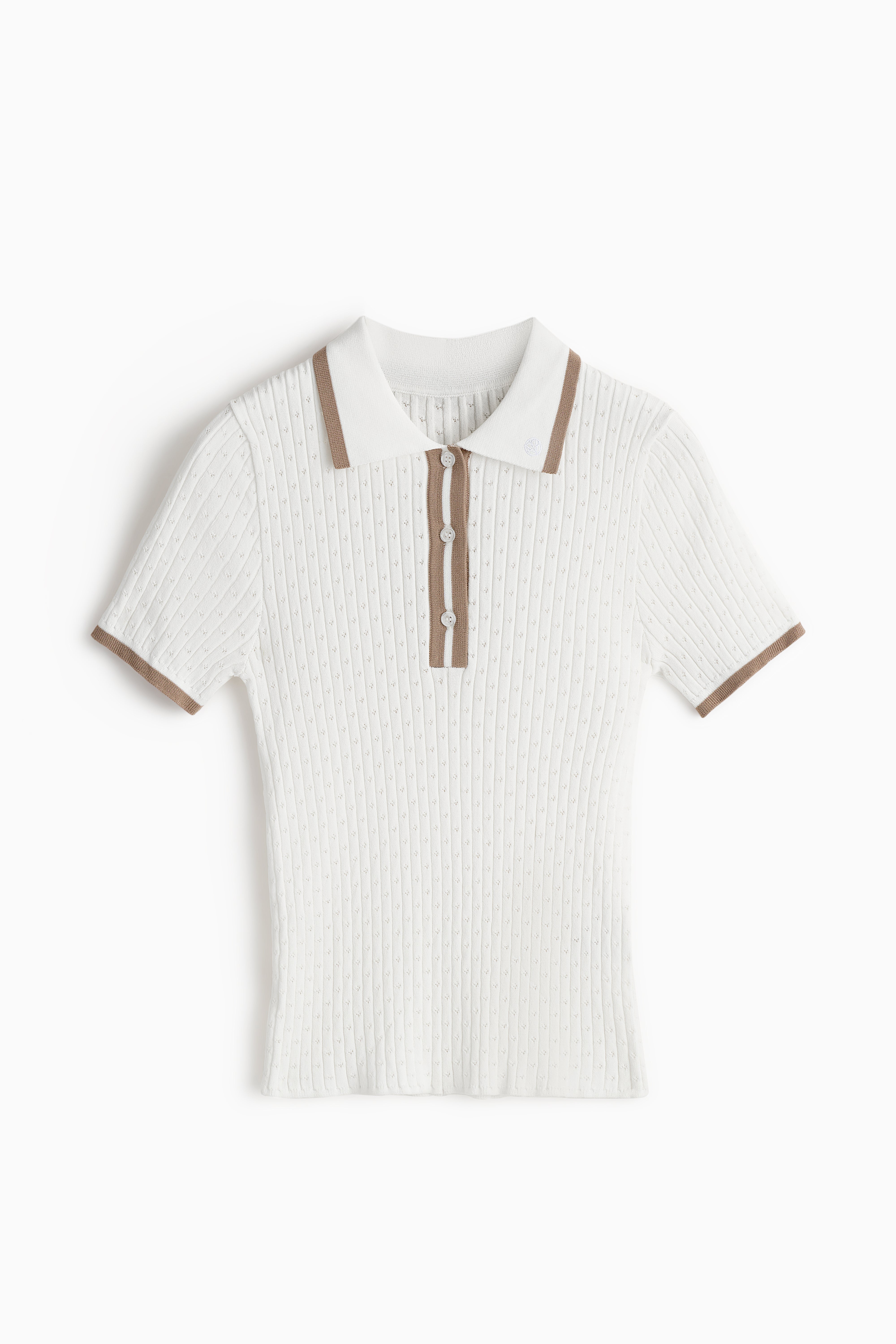 The Jamie Pointelle Knit Polo blends classic sport styling with refined femininity. Crafted from a soft stretch rib knit, this form-fitting polo features a breathable pointelle design, button-front placket, and contrast stripe detailing on the collar and sleeves. Finished with a subtle tonal Victoria Paulsen logo embroidered on the collar, it transitions effortlessly from the golf course to the tennis court and everyday wear.